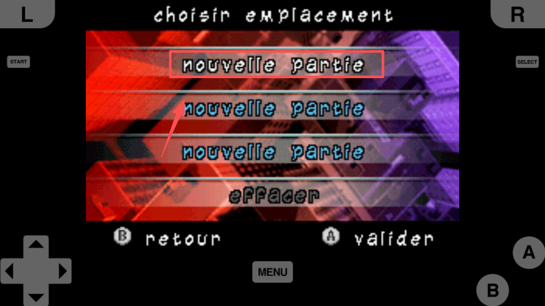 2、在菜单中选择“nouvelle partie”选项,创建一个新的游戏存档并开始游戏。