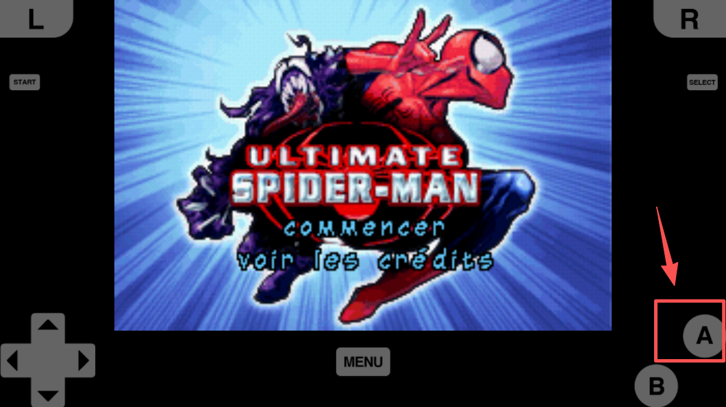 1、在游戏标题界面,点击“A”键进入游戏菜单,准备开始你的冒险之旅。
