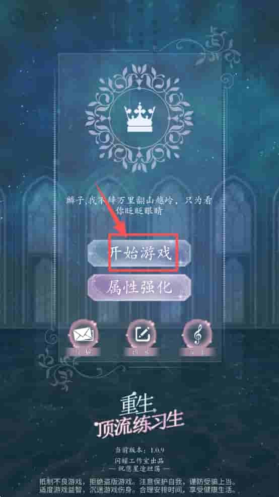 2、在游戏开始界面,点击“开始游戏”按钮,正式开启你的明星之路。