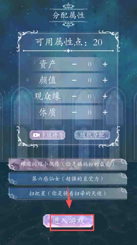 4、合理分配属性点或使用“随机分配”,然后点击“进入游戏”开始你的冒险。