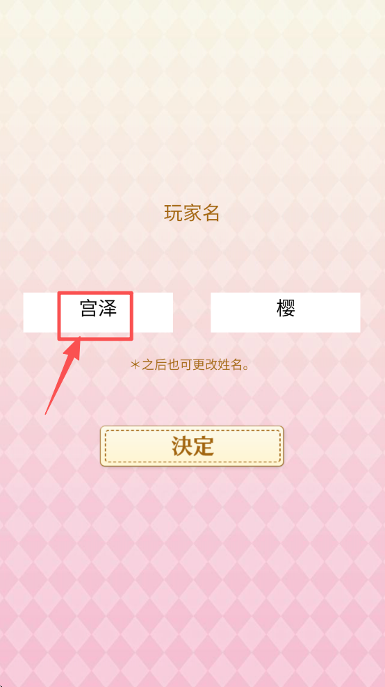 1、在玩家名设置界面,输入你的角色名,点击“决定”按钮,完成角色创建。