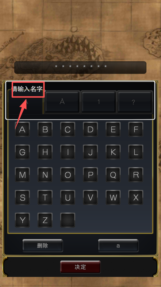 3、在角色创建界面,点击虚拟键盘输入你的角色名字,然后点击“决定”确认。