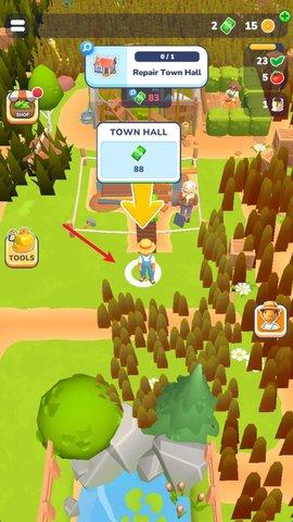 1、进入到游戏场景中后玩家可以移动屏幕来控制人物的走向,开局需要玩家来砍点木材。