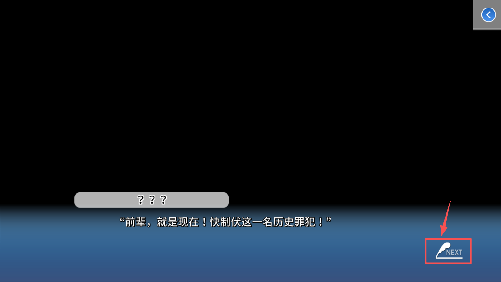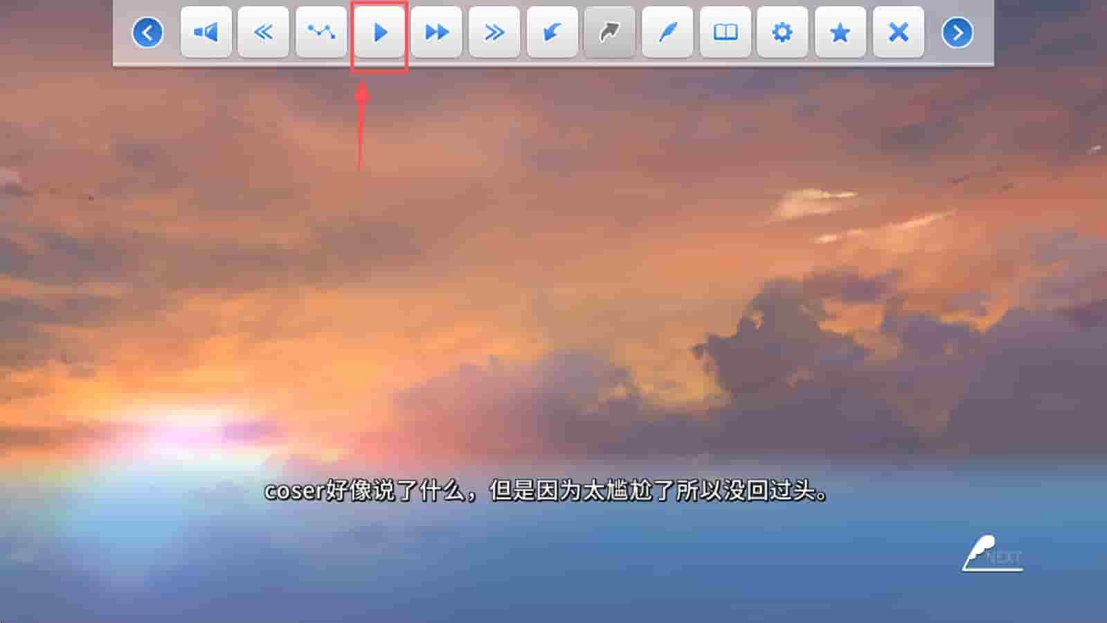 4、使用屏幕顶部的快进按钮,跳过已阅读过的内容,快速推进游戏进程。