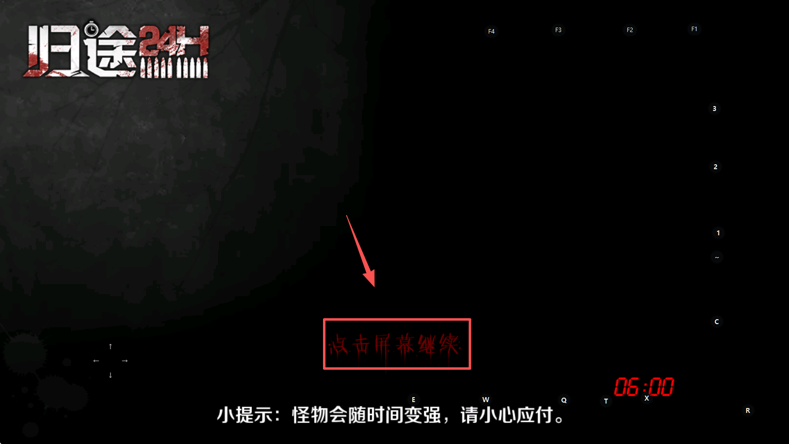 3、在游戏提示界面,点击“点击屏幕继续”按钮,继续游戏进程。