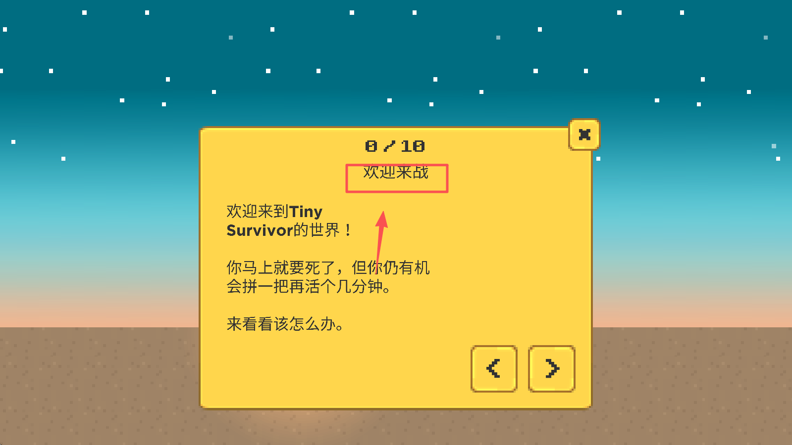 1、点击“开始游戏”按钮,进入游戏,准备开始你的生存挑战。