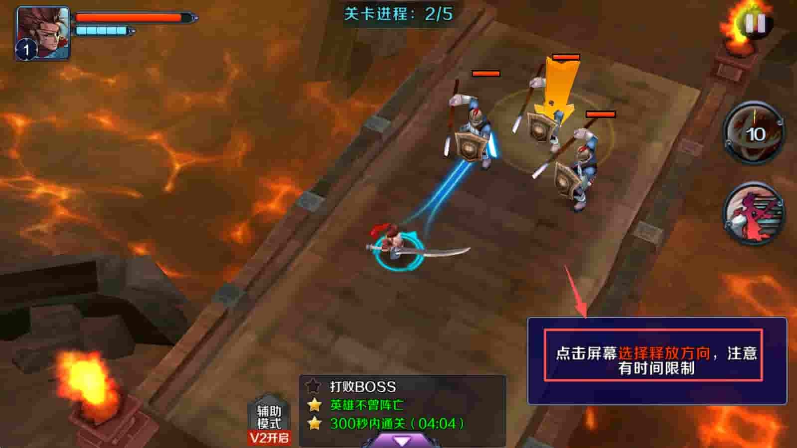 1、点击屏幕选择技能释放方向,注意有时间限制,精准控制战斗节奏。