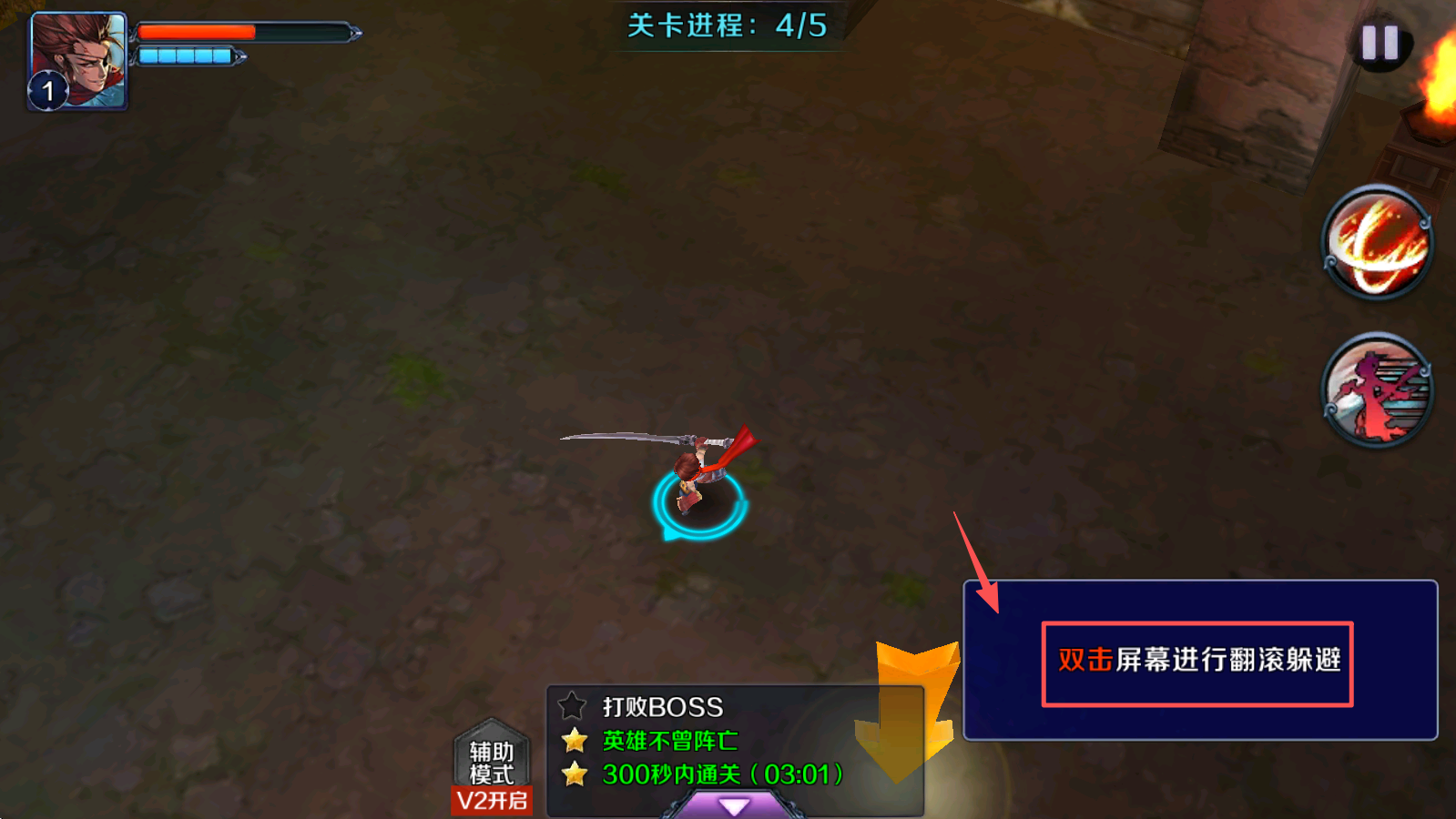 4、双击屏幕进行翻滚躲避,巧妙避开敌人攻击,保持角色生存。