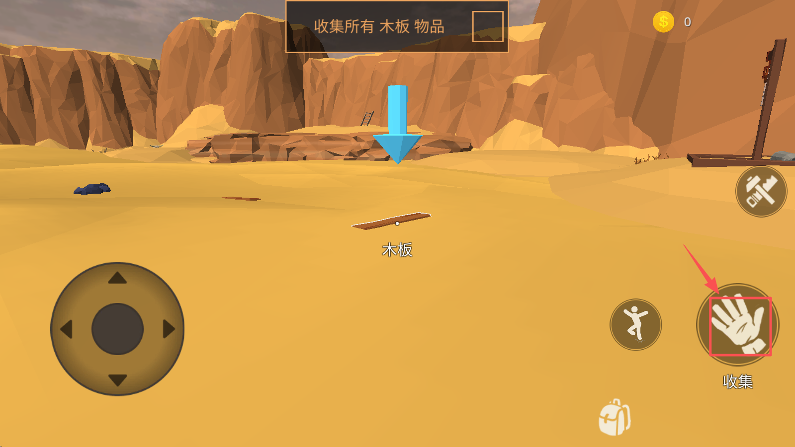 2、收集木板,找到木板后,靠近它,系统会提示你收集所有木板物品。