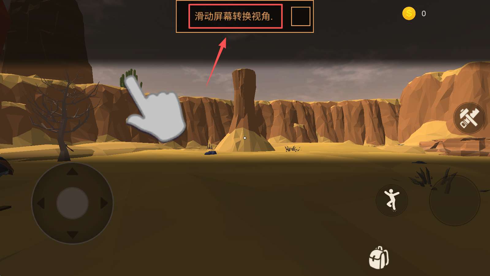 1、转换视角,滑动屏幕来转换视角,更好地观察周围环境,寻找资源。