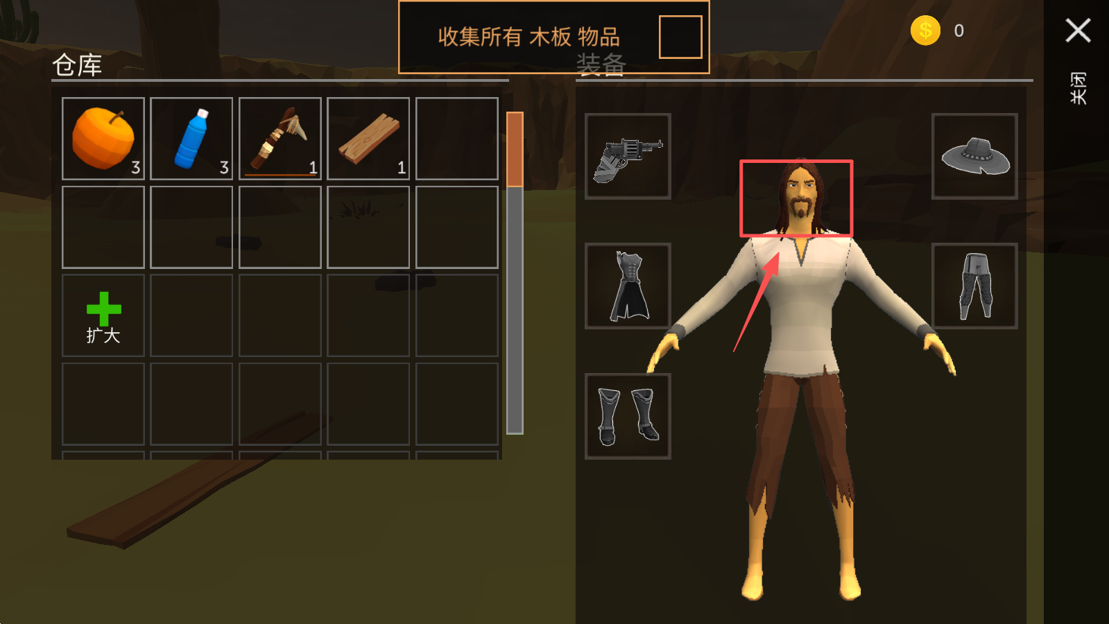 3、收集物品,点击“收集”按钮,拾取木板,增加你的资源库存。