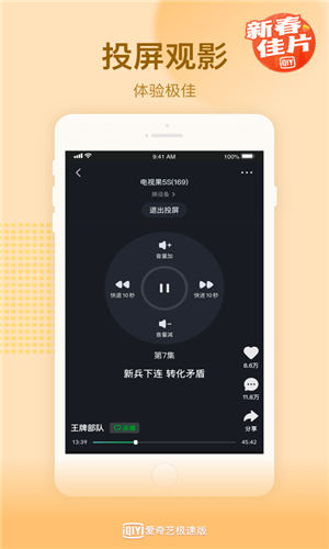 安卓爱奇艺极速版2022最新版有着比爱奇艺正式版更为轻巧的体积,但在内容上几乎完全相同。爱奇艺极速版2022最新版为您将各种比较不常用的播放功能进行省去,更好节省用户的手机空间,为您带来最纯粹的观影服务。