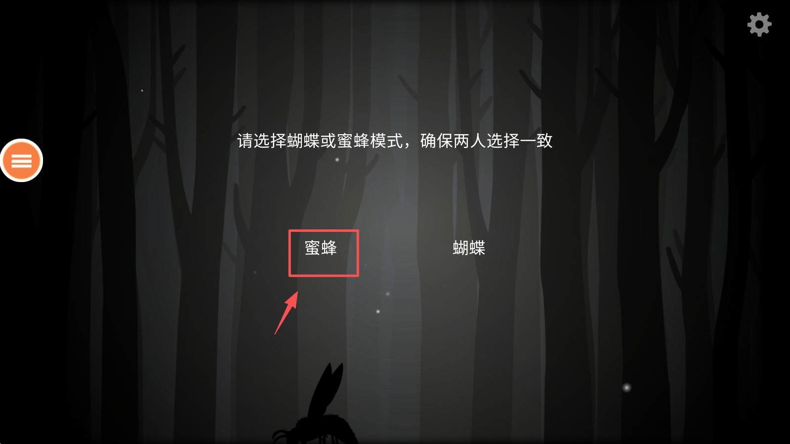 4、选择“蜜蜂”模式,确保两位玩家选择相同的模式。