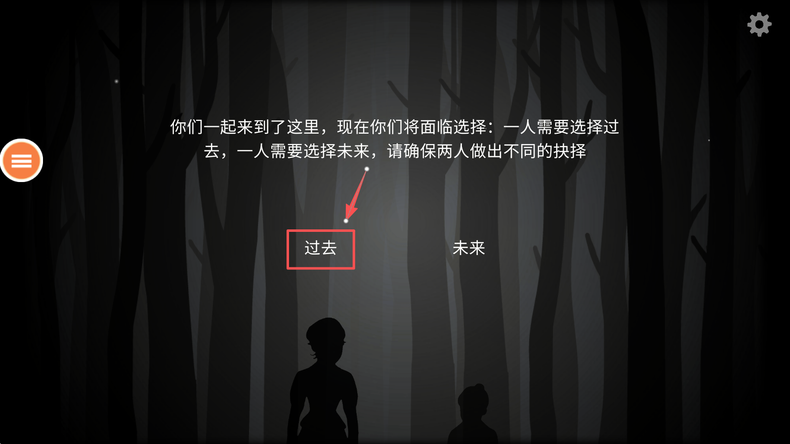 2、选择“过去”,确保与另一玩家选择不同的时间线。