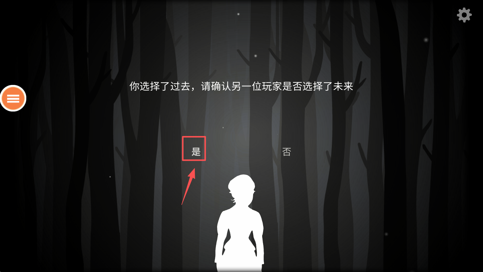 3、确认另一玩家选择了相反的时间线,点击“是”继续。