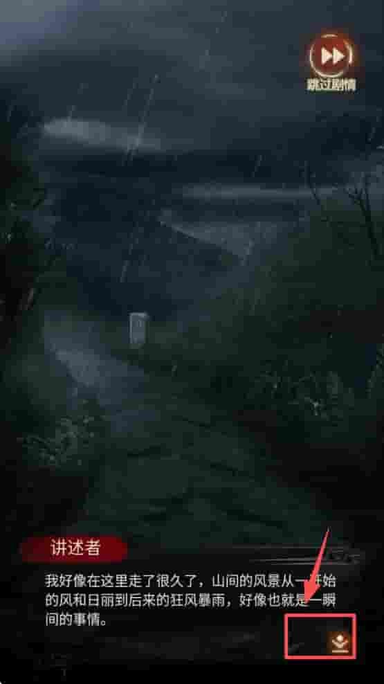 1、首先,点击屏幕上的“跳过剧情”按钮,快速进入游戏主界面。