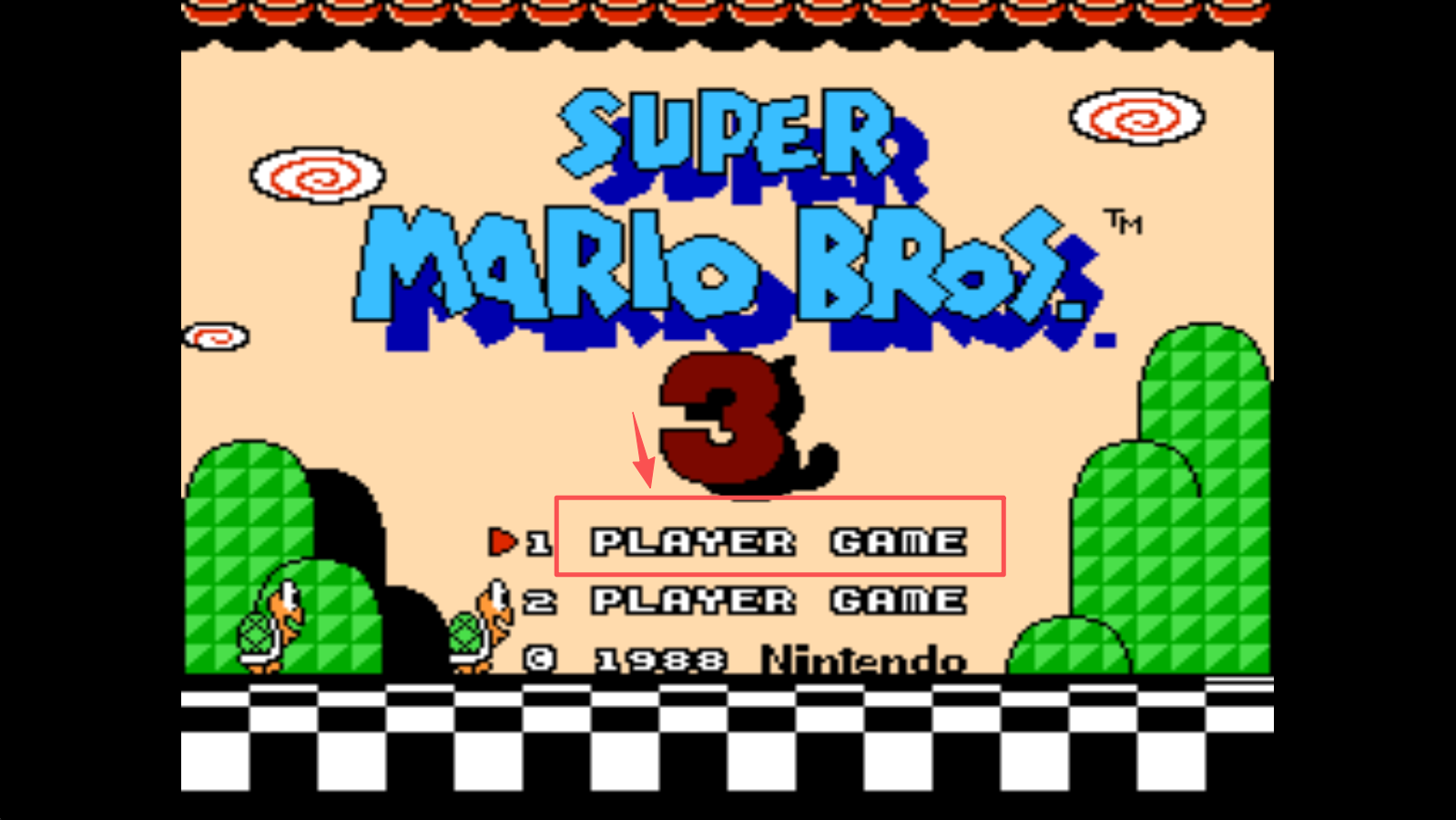 1、点击“1 PLAYER GAME”按钮,开始单人游戏。