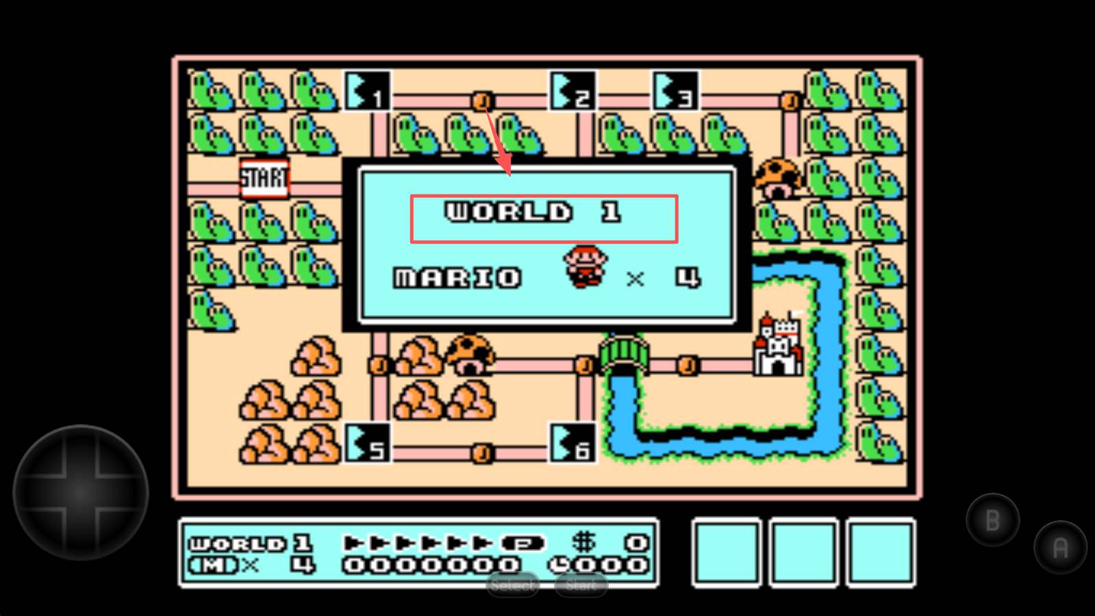 2、在地图界面中点击“WORLD 1”按钮,进入第一关,开始你的冒险。