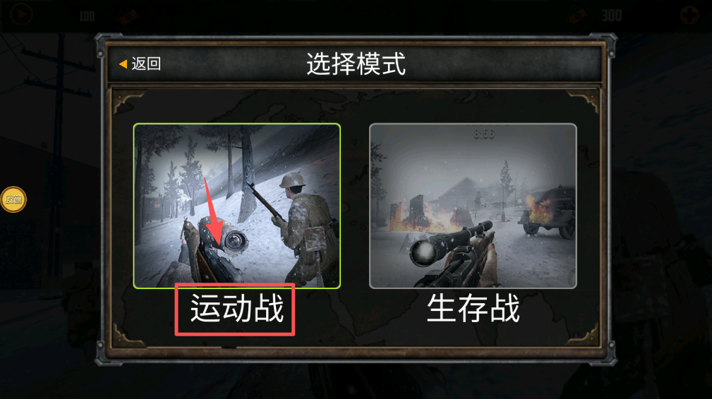 2、选择模式,在模式选择界面,点击“运动战”选择你的游戏模式。