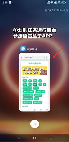 1、划到任务运行后台长按语音盒子app