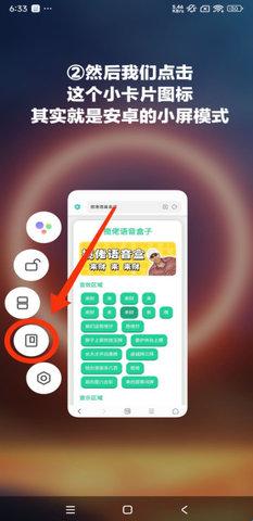 2、点击小卡片图标,其实就是安卓的小屏模式