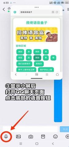 3、显示小屏后打开QQ页面,点击底部的语音按钮