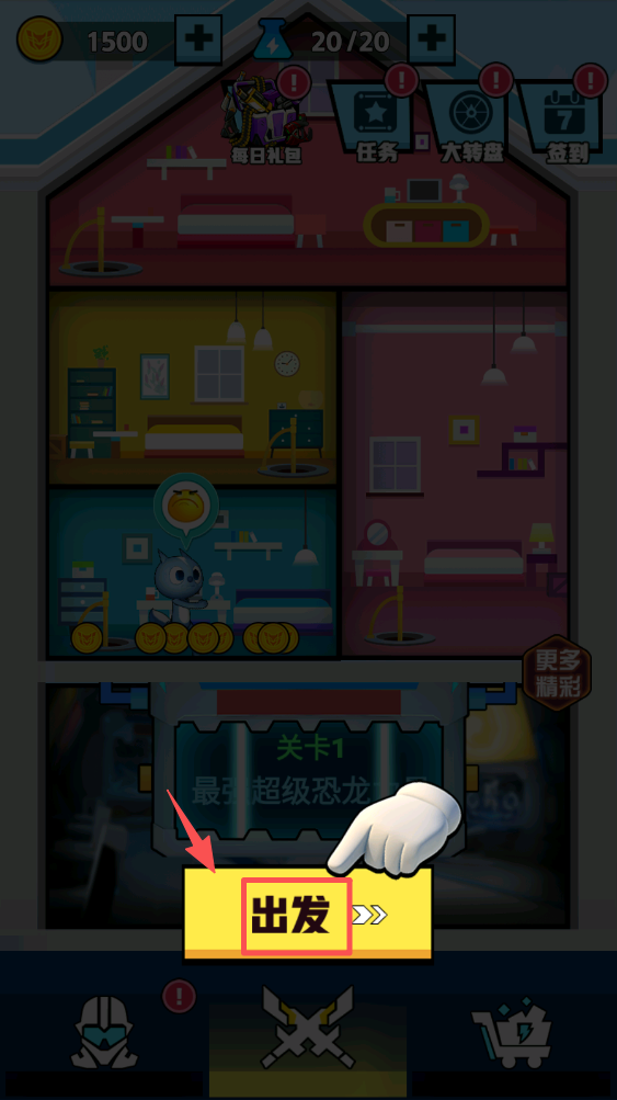 1、从主界面点击“出发”按钮,选择关卡进入游戏。