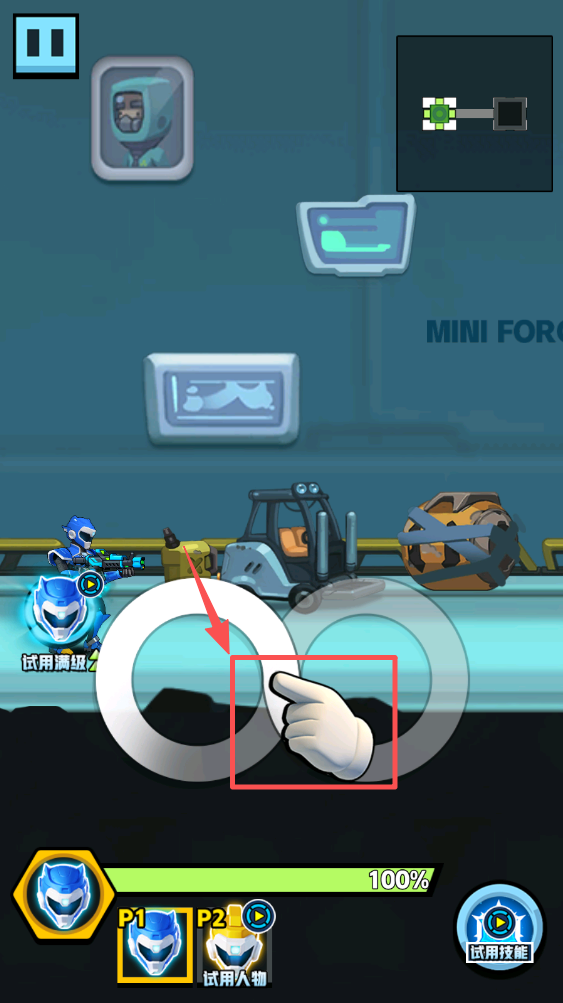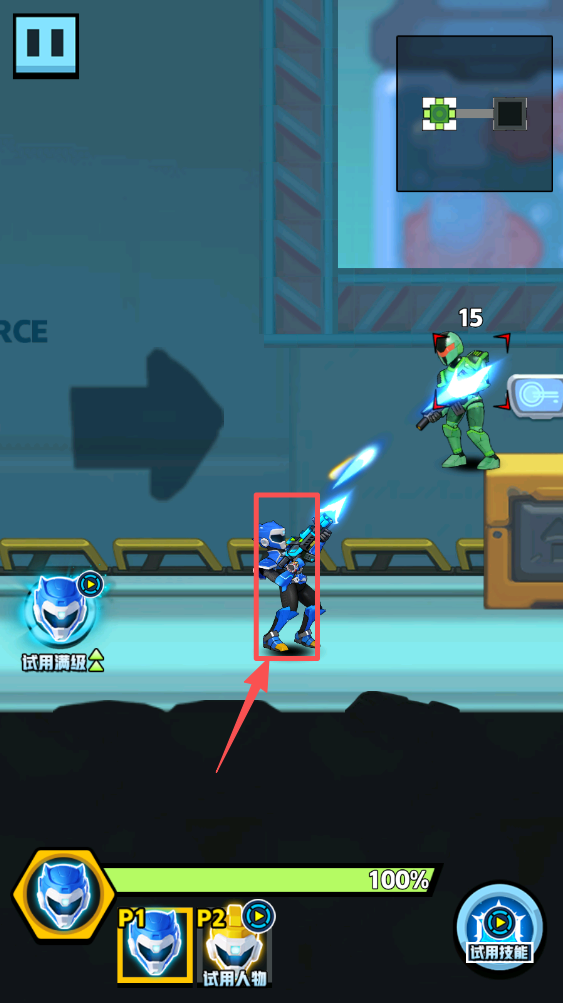 2、进入关卡后,通过虚拟摇杆控制角色移动,准备战斗。