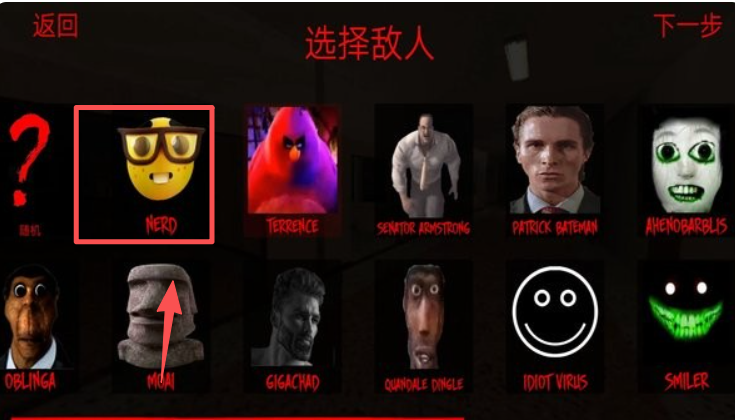 3、选择敌人角色。在角色选择界面,点击你想要对抗的敌人角色,然后点击“下一步”。