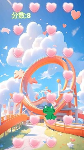 3、青蛙通过点击屏幕跳跃,需要准确地跳到爱情的地方,如果摔倒,游戏就会结束。