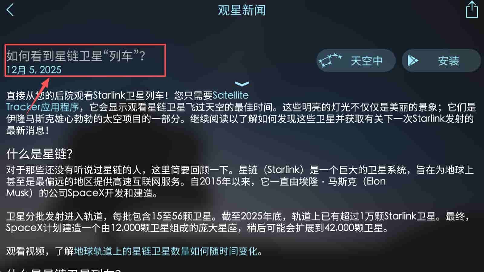 4、阅读新闻详情,了解如何观测特定天文现象,比如星链卫星“列车”的观测方法。