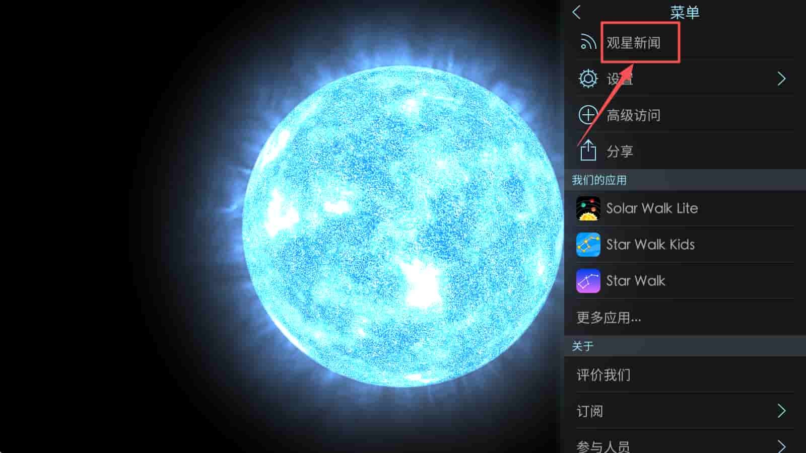 1、点击菜单中的“观星新闻”选项,进入新闻资讯页面,获取最新的天文信息。