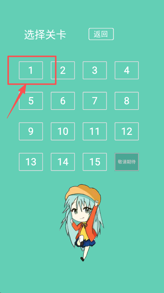 2、在关卡选择界面,点击“1”号关卡,选择你要挑战的第一关。