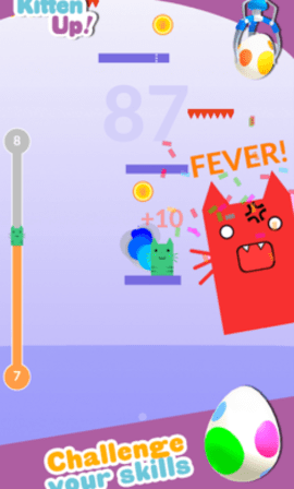 2、控制小猫跳跃的高度和时机,跨越各种有趣的障碍;