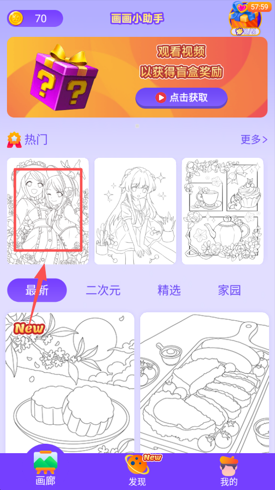 2、在“发现”页面选择感兴趣的图画开始创作,享受绘画乐趣。