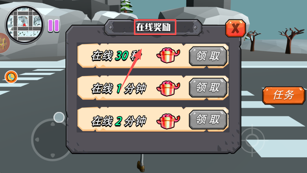 4、点击“在线奖励”,领取在线时间奖励,获取额外游戏资源。