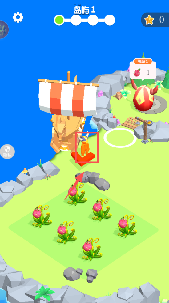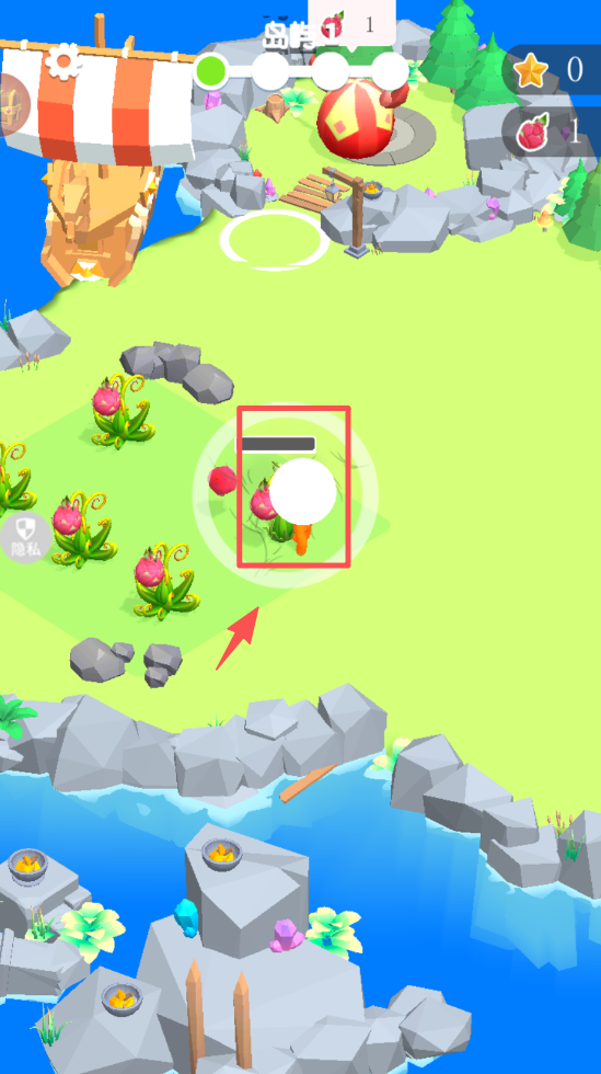 2、点击白色圆圈,移动角色到指定位置,进行资源收集。