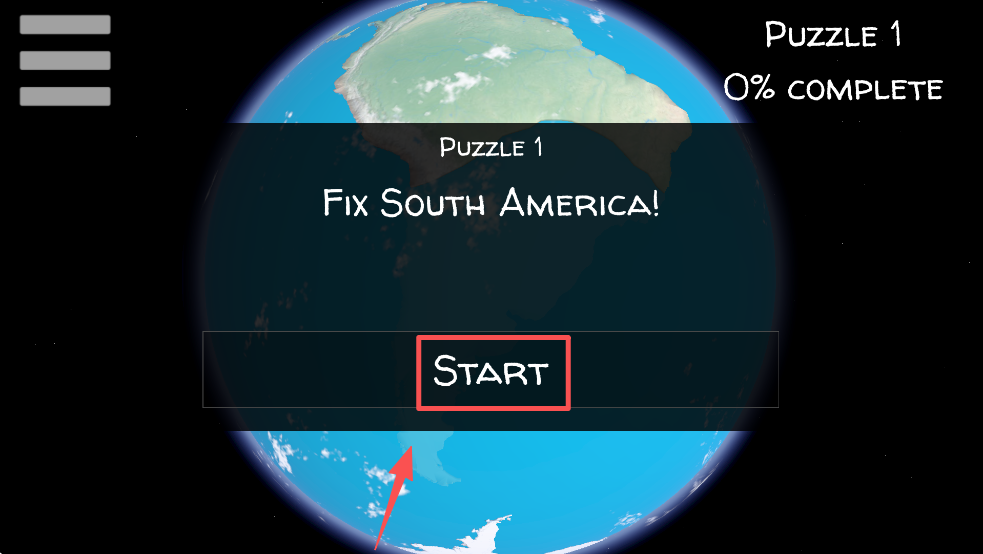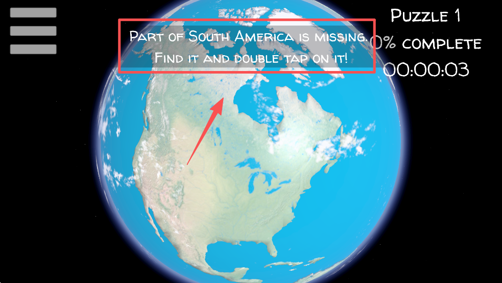 4、根据提示找到缺失的南美洲部分,双击以完成拼图。