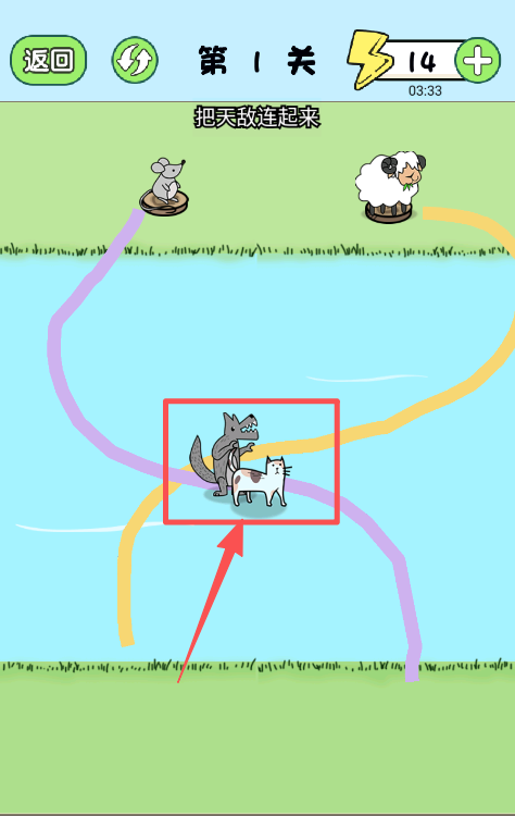 4、将狼与对应的天敌用线连接起来,完成该关卡的配对任务。