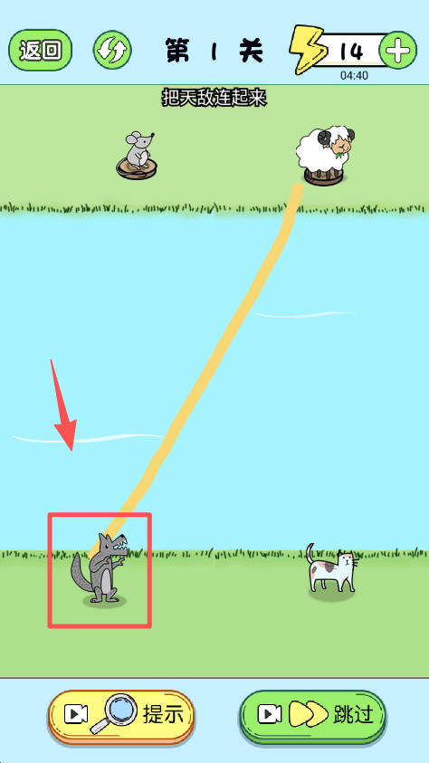 3、在 “把天敌连起来” 关卡中,找到代表天敌的狼,准备进行连线操作。
