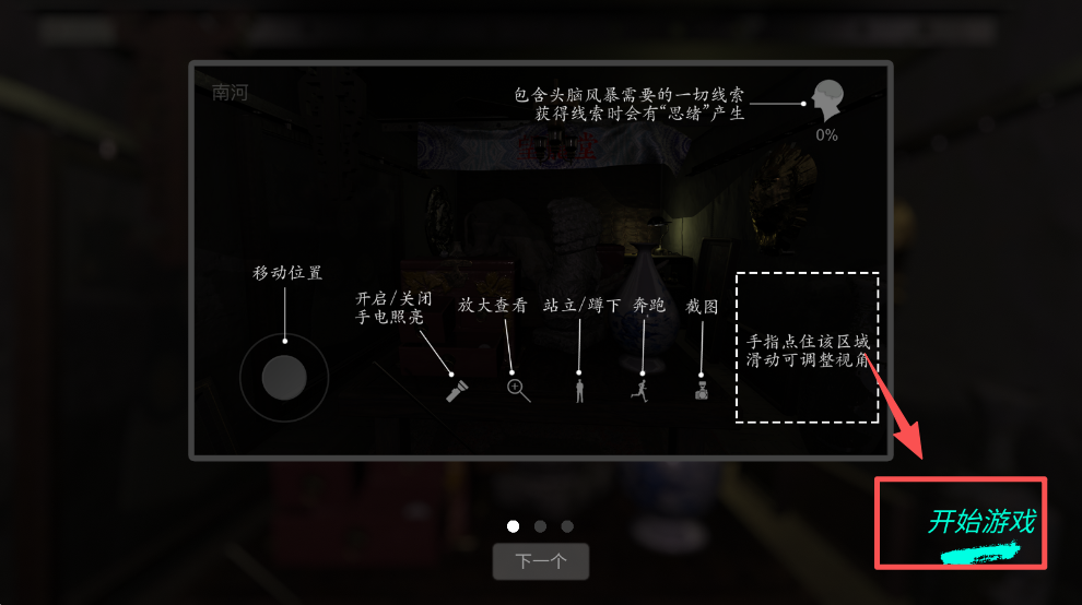 4、在游戏场景中移动,点击箭头指示的位置,开始搜集线索和解开谜题。