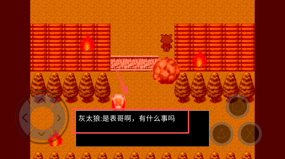4、继续查看后续剧情对话 “灰太狼:是表哥啊,有什么事吗”,了解剧情发展。