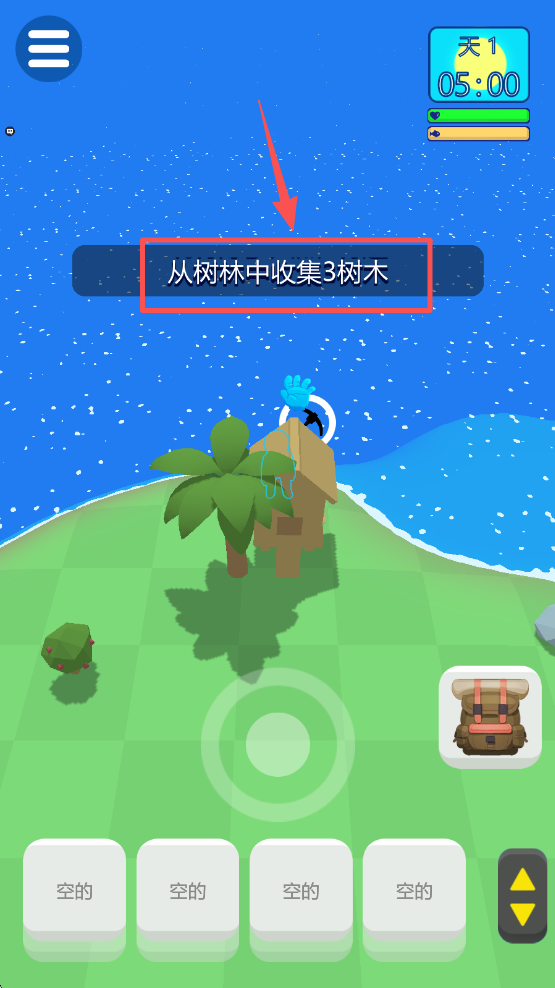 4、操控角色前往树林区域,收集 3 个树木资源,满足手工桌子的制作条件。