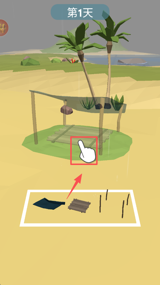 4、在营地搭建界面,点击提示位置,将材料组装成简易的生存营地设施。