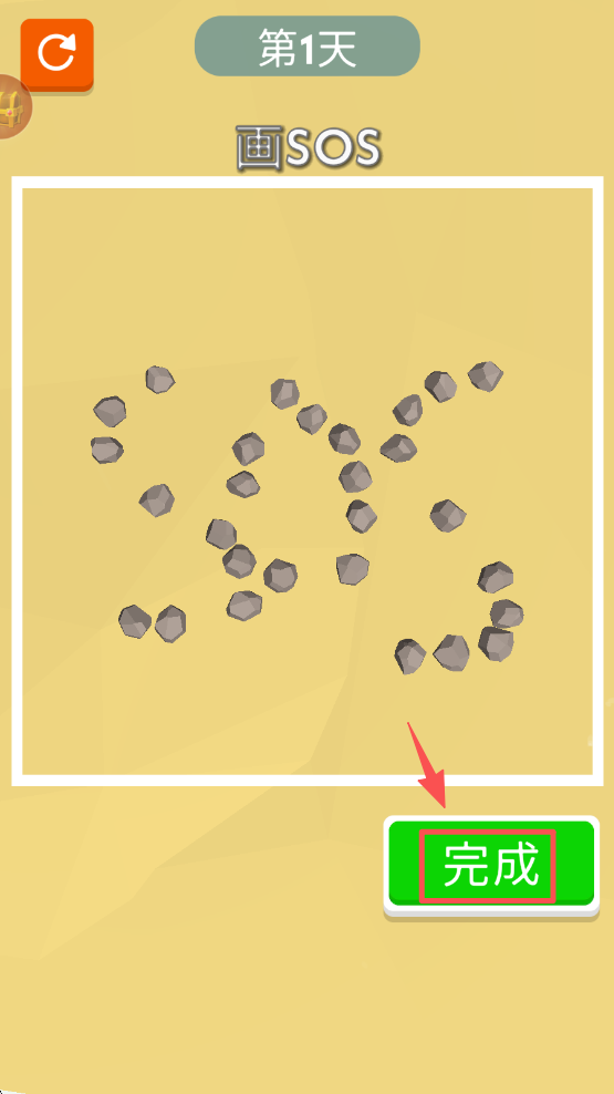 2、在 “SOS” 绘制关卡中,确认图案摆放完成后,点击 “完成” 按钮提交当前操作。