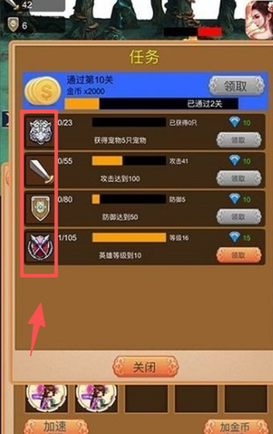 2、在任务界面,查看已完成的任务项,点击对应 “领取” 按钮获取任务奖励。