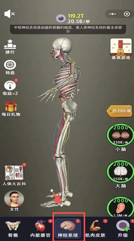 4、切换到 “神经系统” 分类,查看该系统的相关介绍与可升级的部位。