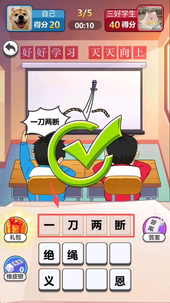 3、根据图片提示,从下方选项中选择正确的成语,完成猜谜。