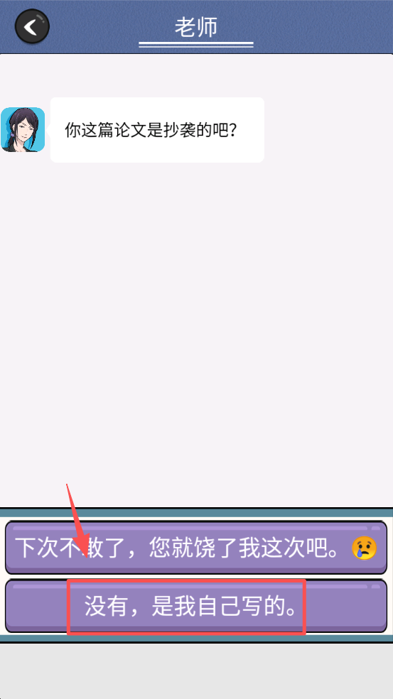 4、与老师互动,选择正确的回答方式,避免被老师发现抄袭论文。