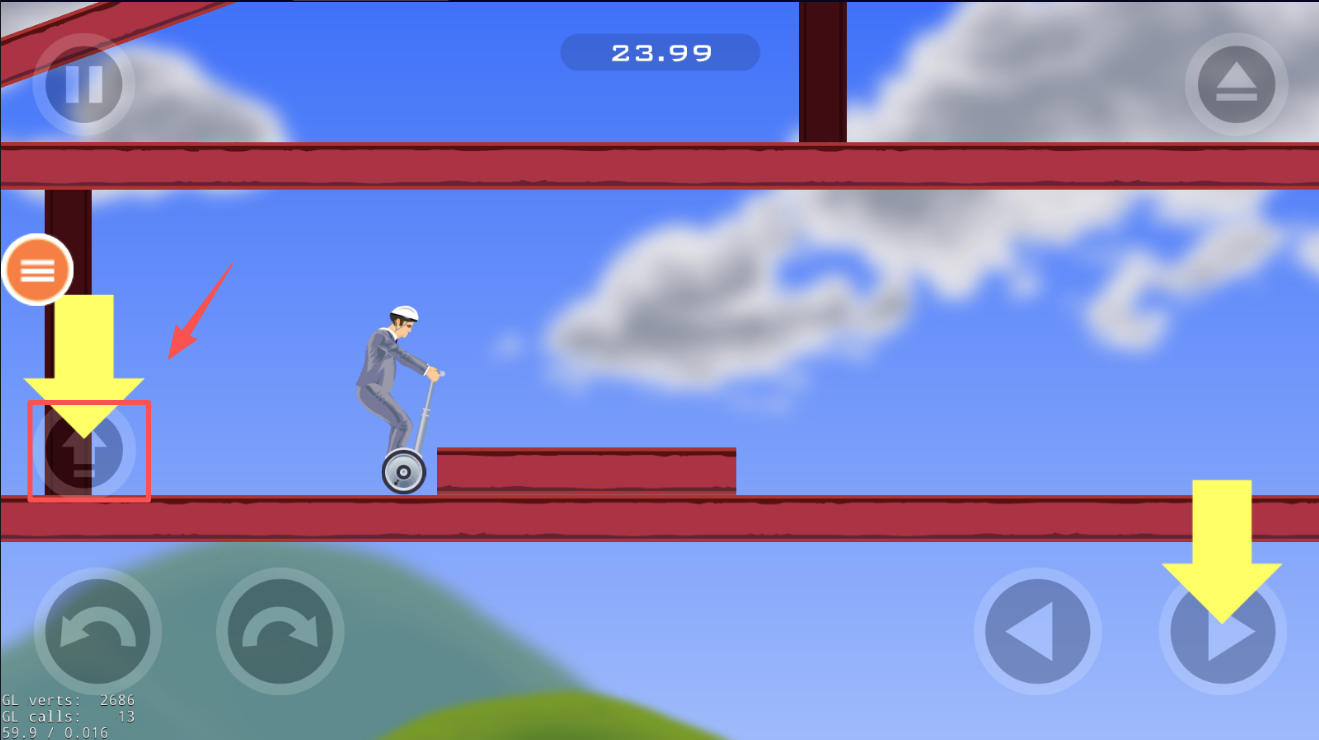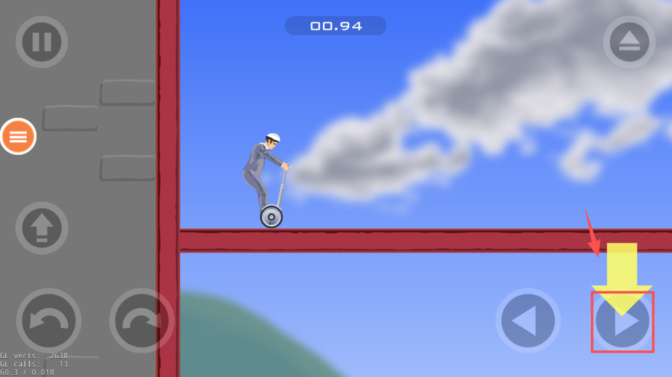 3、控制角色移动。使用屏幕下方的左右箭头按钮来控制角色在平台上的移动。